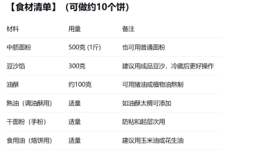 作用:油酥是起酥的关键,能让饼皮层次分明、酥脆可口。