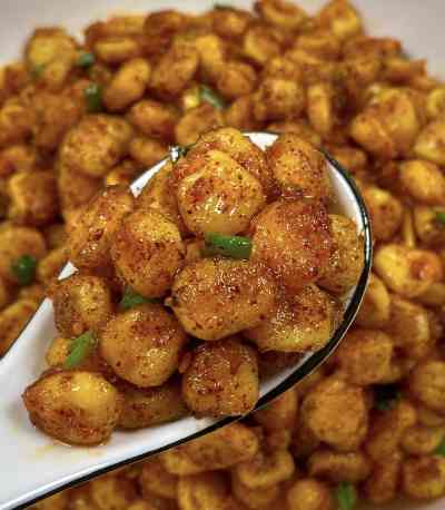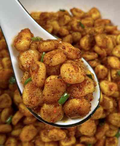 1.趁热调味:将复炸后的玉米粒捞出,沥干油分后立即撒上椒盐粉,用筷子快速翻拌,让每一粒玉米都均匀裹上椒盐。椒盐的用量可根据个人口味调整,喜欢重口味的可以适当多放。