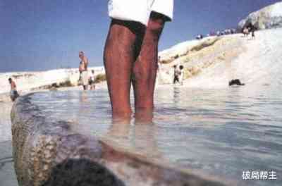 白色的山坡俨然就是天成的日光浴场,尽管石灰岩有些硬硬的硌脚,却并不妨碍游客们打赤脚走在上面的热情。他们兴致勃勃地拎着鞋子从山顶沿曲折的小径走到温泉中,泉水飘着淡淡的白色蒸汽,由于富含钙、镁等多种矿物质的缘故,在阳光的折射下,泛出靓丽的浅蓝色。进入这蓝宝石一样的水面,每一个毛孔都在热气中打开,身心得到了全面放松,所有的疲劳一扫而光,整个人都进入了自然美景的诗情画意,然后随之融化……