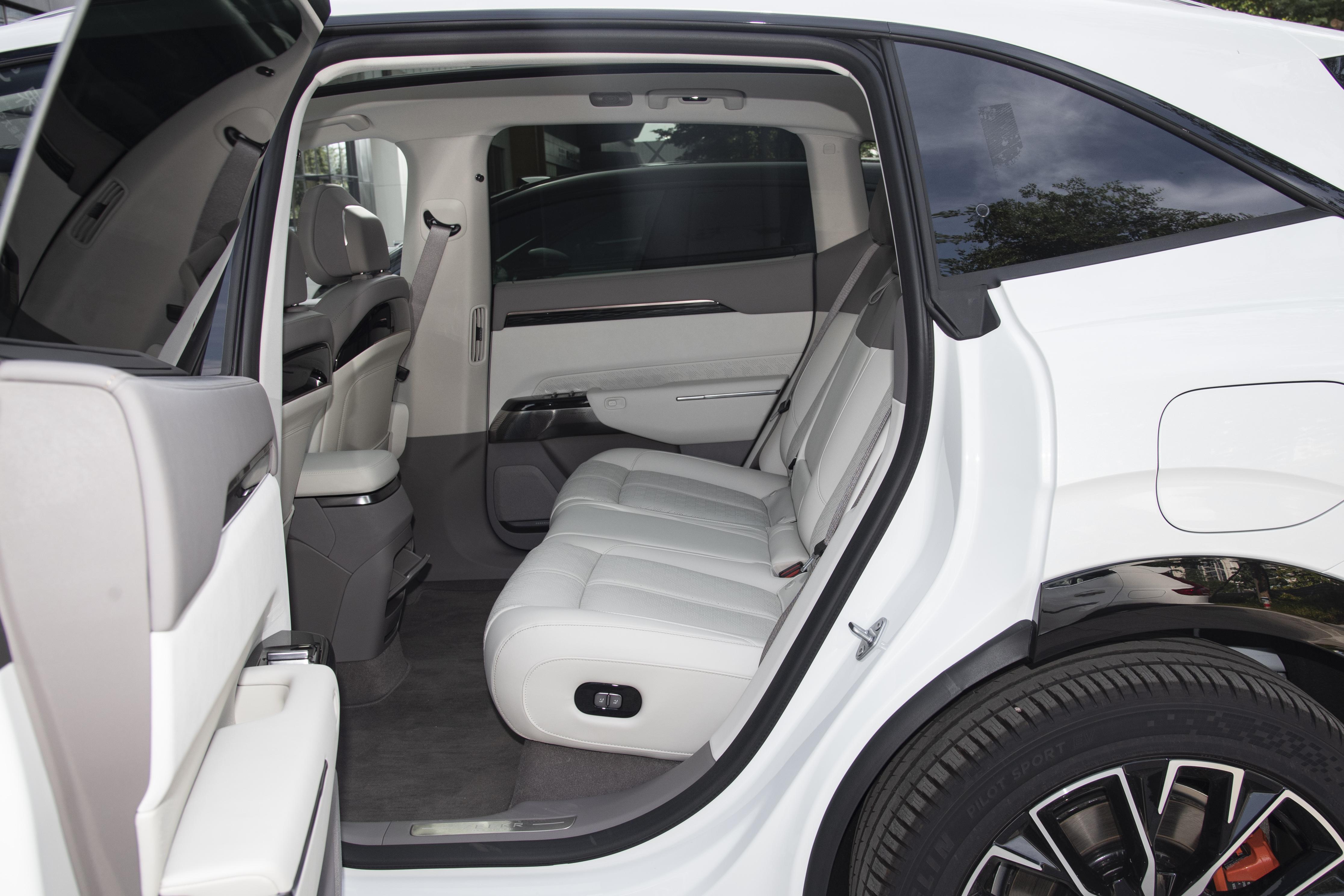 外观看完,空间才是核心。极氪7X的车身尺寸其实在同级里不算最大,但空间利用率真高。后排腿部空间特别宽敞,我1米78,前排调到合适的位置后,坐进后排膝盖都还有两拳多距离。家里老人腿脚不太利索,上下车不会碰脚、弯腰也能轻松进出。后排座椅坐垫长度和柔软度都不错,长时间坐着不累,也不像有的车后排那种“板凳感”。带小孩出门时,安全座椅接口很容易找到,安装拆卸都方便。后排地台接近平整,三个人坐也不觉得拥挤。实测带着两老人一孩子一起出门,大家都能找到舒服的坐姿,孩子在座椅上活动空间大,老人能伸直腿,家用属性很明显。