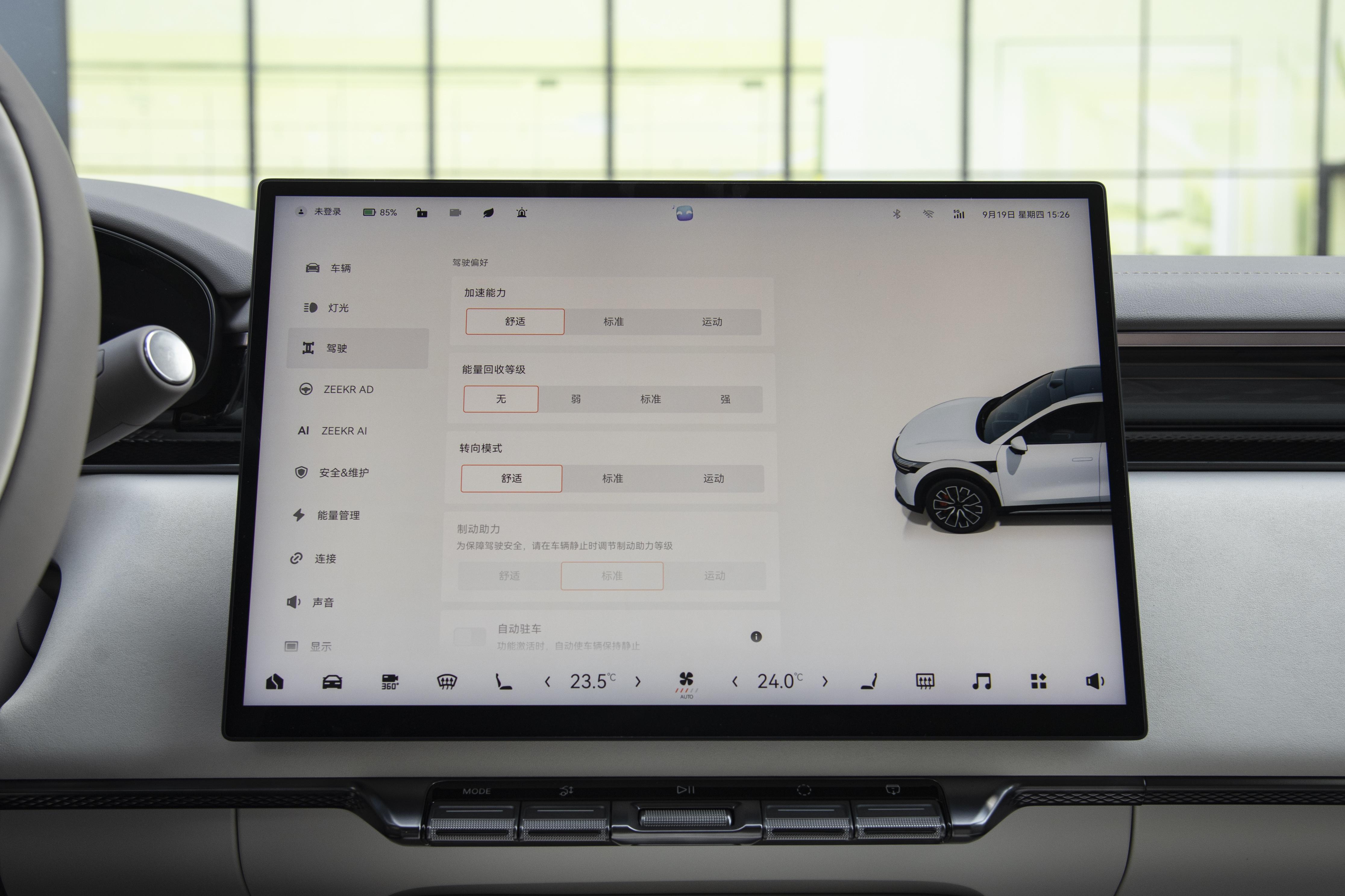 再说动力,极氪7X给我的感觉和传统燃油SUV完全不同。起步时油门很轻,脚一踩下去动力就立刻响应,没有一丝拖沓,也没有突然窜出去吓人的那种突兀,比我以前开的合资SUV顺多了。官方说四驱性能版百公里加速能做到3.8秒,虽然我平时用不上这么极限的数据,但实际体验中,无论是红绿灯起步、还是二次加速超车,动力储备都很充足。举个例子,有一次在高架快速路超车,轻踩油门车子就像被轻轻推了一把,很顺畅地就超过去了,完全不用担心超车信心不足。电门踏板的调校很线性,不会像有些电车那样一踩就“蹿”,家里有老人和小孩坐车的时候,起步跟随很平稳,家人都挺满意的。