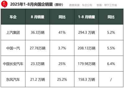 不只东风汽车,一进入9月,央国企就陆续公布8月业绩,数据都可圈可点。