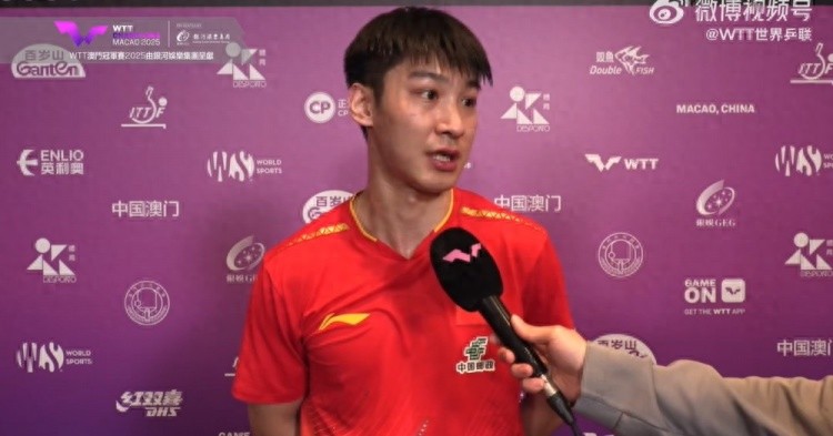 直播吧9月11日讯 WTT中国澳门冠军赛男单1/16决赛,国乒选手薛飞3-0战胜张本智和晋级16强,他赛后接受了媒体采访。