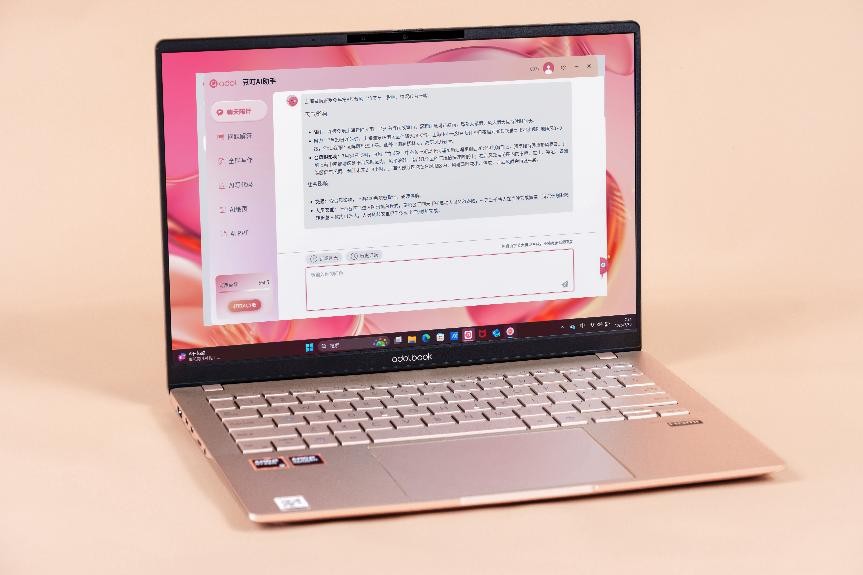 不仅性能强大、AI出众,限定华硕a豆14 Air 香氛版还兼顾轻薄,并带来持久续航,时刻“香”伴随行。整机轻约1.3kg、薄至13.9mm,轻薄便携;瑰蜜粉金配色,亮眼吸睛;两侧配备大满贯接口,包括两个超快的全功能USB Type C、两个USB Type A、HDMI 2.1 TMDS以及MicroSD读卡器,足以满足PD快充、4K高清画质输出、外设连接、数据传输等需求。搭配内置的75Wh全天级冻龄大电池,以至高约14小时持久续航,轻松响应全天级工作任务。