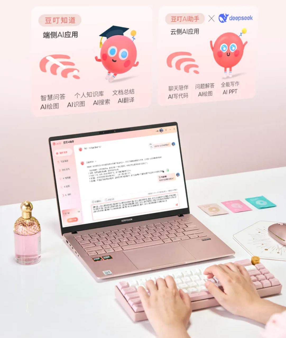 内置两款AI应用,成为你的高效助手、智能闺蜜。“豆叮知道”基于端云一体AI大模型,断网可用,并带来智慧问答、个人知识库、文档总结、AI绘图、AI识图、AI搜索、AI翻译等功能,全方位升级用机体验,24小时不间断智能服务助力效率飞升。“豆叮AI助手”接入deepseek大模型,支持聊天陪伴、问题解答、全能写作、AI写代码、AI绘图、AI PPT等功能,助你轻松攻克学习中难题、创意瓶颈等困境。