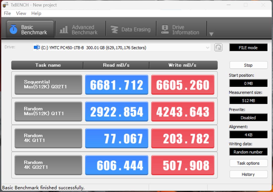 TxBench测得读取速度为6681.712MB/s和6605.260MB/s。