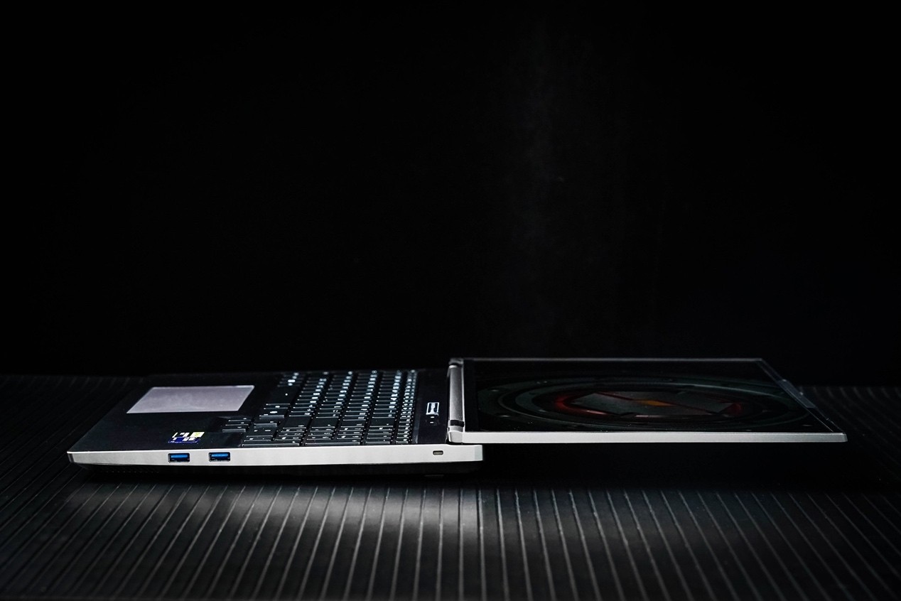 A面设计非常平整和简洁,上部点缀有RGB炫彩灯效的机械革命logo,磨砂表面工艺手感舒适,纳米级超声铣削的线条硬朗而又不失圆润。