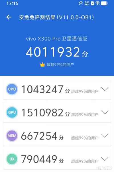 天玑9500是联发科最新一代旗舰芯片,与高通骁龙8Elite Gen5一样,用的都是第二代3nm工艺制程,vivo X300 Pro的跑分高达401W+,这是已知的最强安卓旗舰手机了,分数可能又要碾压全场所有对手。